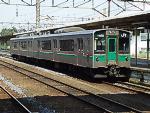キハ100形 ■ 走行音[k100a.ra/438KB] 収録区間:大湊線 大湊→下北(2000.07.31) 駆動機関:DMF11HZ(小松製330PS)×1、またはDMF14HZ(カミンズ製330PS)×1 変速機:DW14-B(直結2段式) ※キハ100形は16m級車体の気動車で、そのうち200番代は側扉をプラグドアから引戸にするなどの 改良を加えて登場した車両です。200番代は大湊線で使われています。 |
