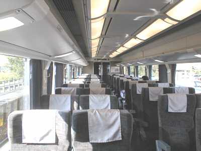 1600系の客室内は2+2列の座席配置で、グレーを基調とした落ち着いたものになっています。